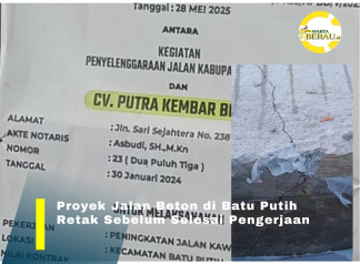 BATU PUTIH, — Proyek peningkatan jalan kawasan IKK Batu Putih, Kabupaten Berau, yang dikerjakan oleh CV Putra Kembar Beton dengan nilai kontrak Rp3,48 miliar dari APBD 2025, kini menjadi sorotan tajam masyarakat.