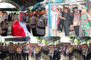 PALU – Kapolresta Palu Kombes Pol Deny Abrahams, S.H., S.I.K., M.H., melalui Kasat Bimas Polresta Palu AKP Sugeng Priyono memimpin upacara pemakaman anggotanya Almarhum Bripka Syarir Hidayat, S.pdi yang meninggal dunia karena sakit.