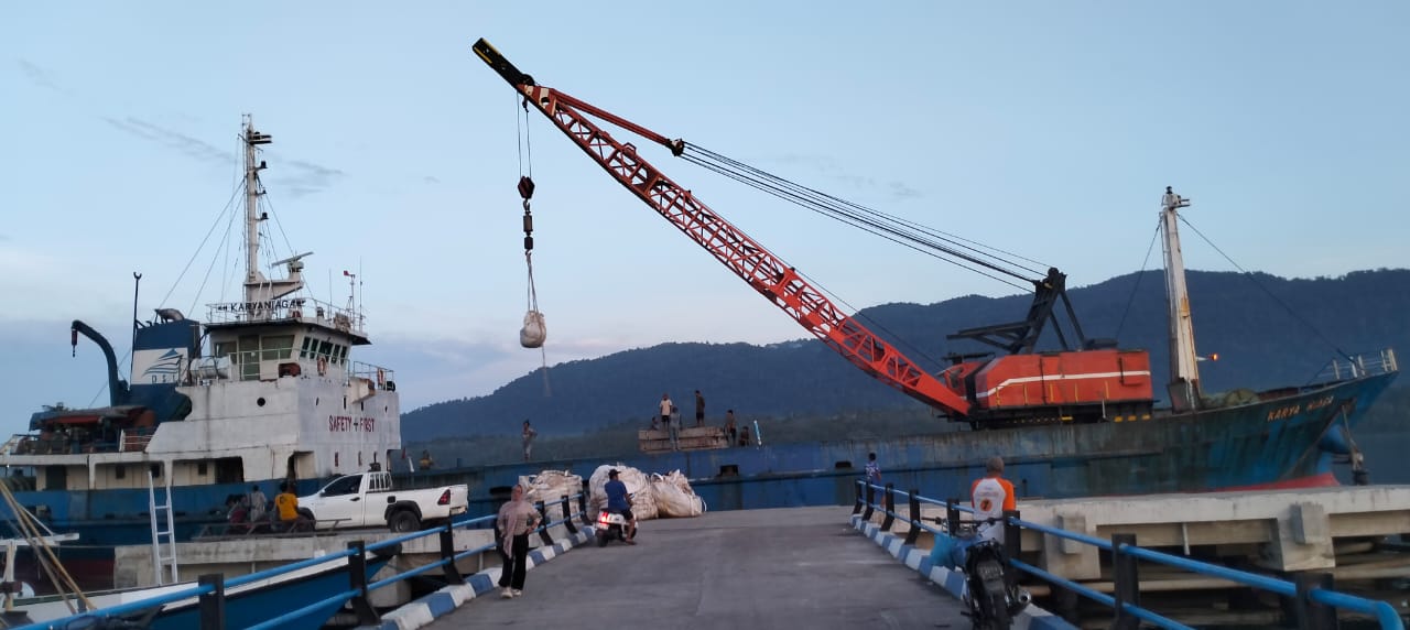 Proses bongkar muat berjalan cukup lancar dengan pengawasan petugas pelabuhan.