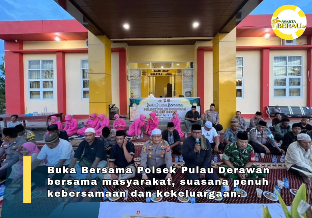 DERAWAN, – Dalam rangka memperingati Bulan Suci Ramadhan 1447 H/2026 M, Polsek Pulau Derawan menggelar kegiatan buka puasa bersama Forkopimcam, masyarakat, dan santri Pesantren Daarul Huffazh Tanjung Batu, Jumat (27/2/2026) pukul 17.45 hingga 19.15 Wita.