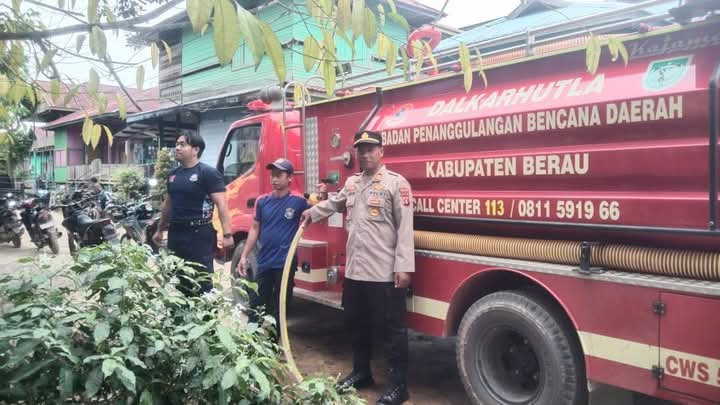 Kapolsek Sambaliung AKP Amin Maulani bersama Badan Penanggulangan Bencana Daerah (BPBD) Kabupaten Berau lakukan pendistribusian air bersih kepada masyarakat pada Jum’at (4/4/25).