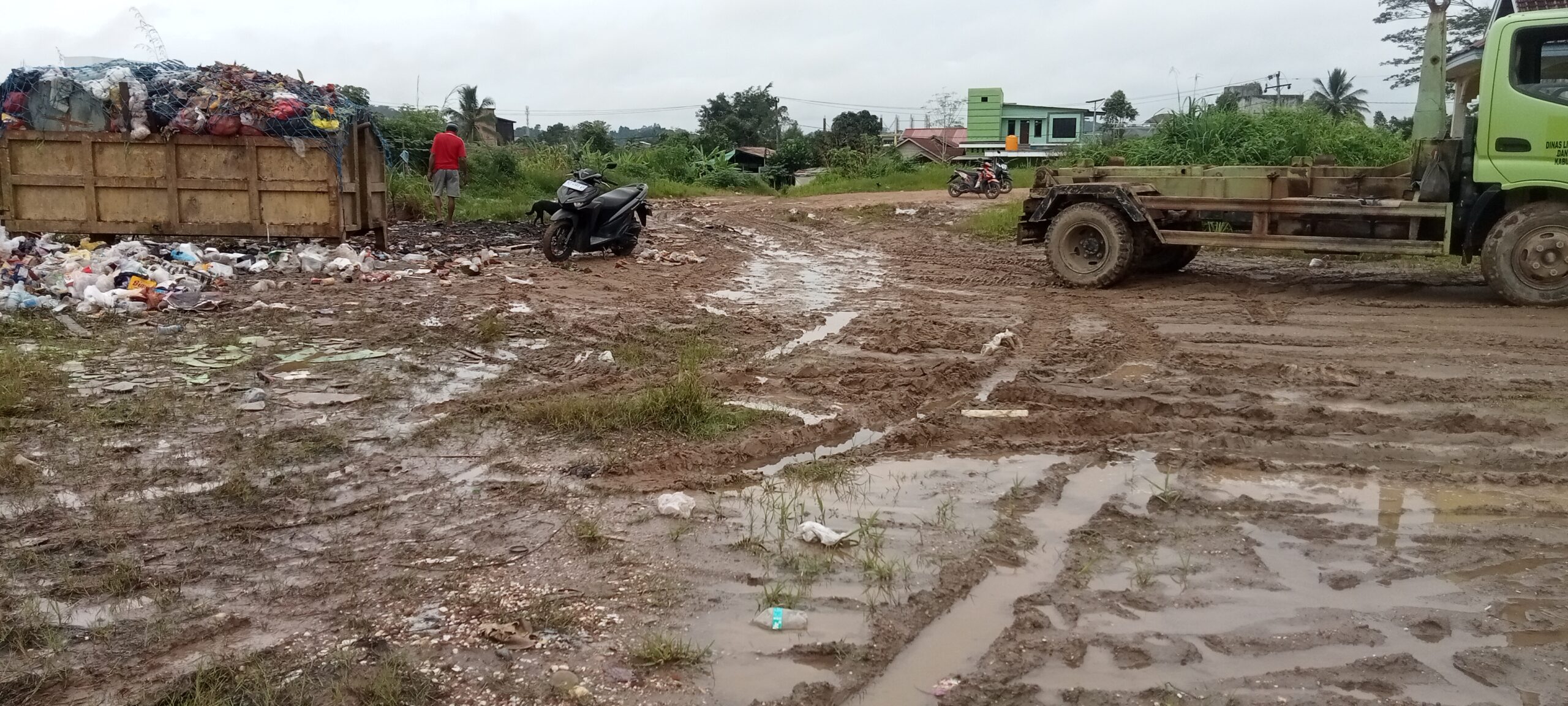 “Jalan becek begini biar dilihat, maunya kita bersih tapi kondisi seperti ini membuat warga memilih secara diam-diam membuang di pinggir jalan yang di atas bukit,” ungkapnya.