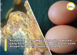 Tak hanya soal kualitas kurma, komposisi telur rebus dalam menu juga menuai tanya para orang tua siswa, Dua butir telur ayam dengan menu lainnya dirapel untuk pembagian tiga hari berpuasa, mirisnya telur rebus dengan ukuran bervariasi sedang dan kecil. Kondisi ini dinilai jauh dari standar kecukupan gizi yang seharusnya menjadi tolak ukur terlaksana program dengan baik.